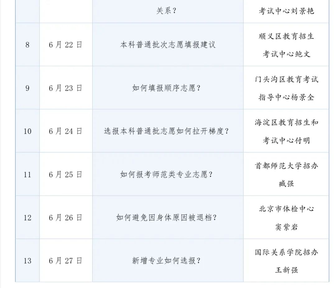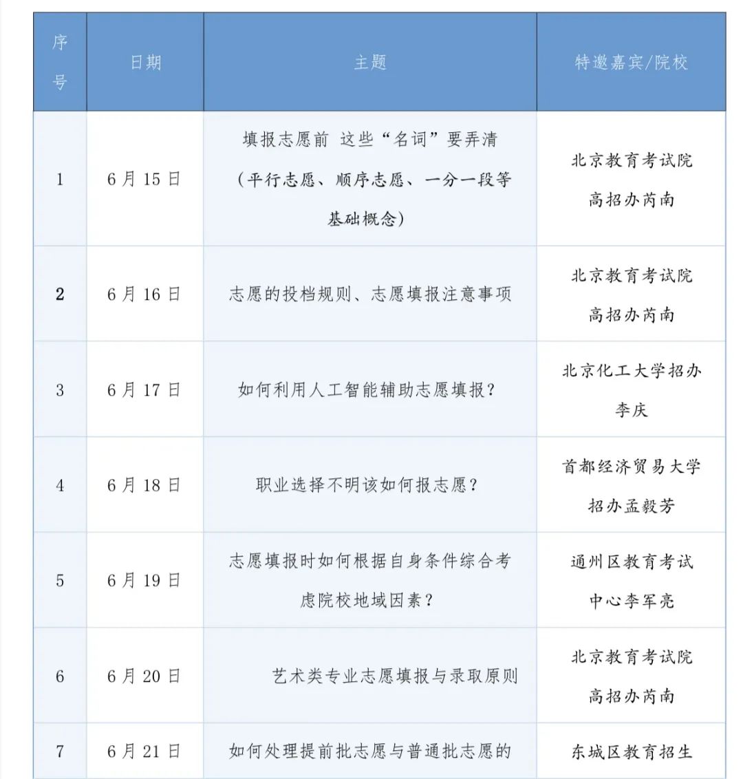 “志愿填报每日谈”话题安排表